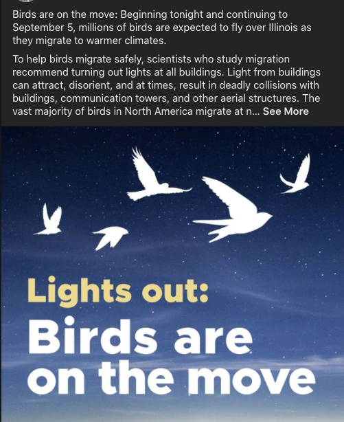 @KayeRayee : Lights out! Birds are migrating this weekend over Illinois and part of the Midwest. https://t.co/N7KMmFtd5g (via Twitter http://twitter.com/KayeRayee/status/1301599063914287108)